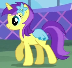 Banana Fluff ist ein Einhorn-Hintergrundpony aus Das Hufschwestern-Festival. Ihr Name stammt aus dem Merchendaise.