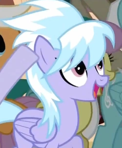 In Fluttershy und die Fliegerei gehört Cloud zum Tornado Team. Beim Training geht sie, begelitet von Flitter, Twilight fragen was sie da für einen Apparat hat. Da ihre Erklärung ihnen etwas zu hoch ist fragt Flitter Spike was das für ein Ding ist. Antwort: Ein Gerät zum Messen der Flügelstärke.