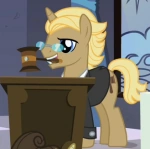 In Rarity will dazu gehören ist er beim Wonderbolts Derby im VIP-Bereich, als Rarity dazukommt. Wie alle anderen auch, hängt er sein Fähnchen in Fancypants Wind. Später will er, dass Rarity unbedingt zu seiner Wohltätigkeitsauktion kommt. Auf der Auktion bieten alle durch Rarity auf dasselbe Objekt, wodurch ihm vor Staunen der Hammer aus dem Mund fällt. Als Mitglied der High Society geht er auch auf die Canterlot-Gartenparty.