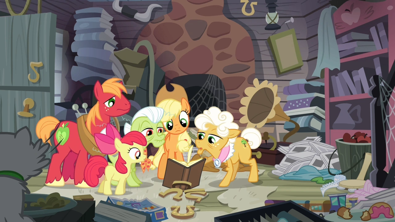 Jetzt möchte Applejack von Goldie wissen warum sie Apple Bloom vor macht der der große Sätzling zu sein. Das weißt Goldie weit von sich und Granny stellt ihre Enkelin zu rede wie sie auf so einen Unsinn kommt. Für Appejack ist klar das irgend ein Pony die Äpfel hingelegt hat und „Sie“ scheint eine menge Spaß daran zu haben. Goldie erklärt das sie nur einen Spaß daran hat weil Apple Bloom ihn hat. Natürlich wollen es Granny und Big Mac auch nicht gewesen sein. Aber in Betracht ziehen das es der große Sätzling war will Applejack auch nicht.