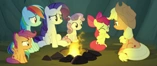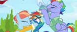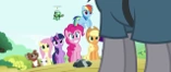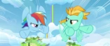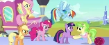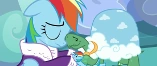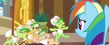 - Z. 16:15: Der Text der Rainbow Dash Vision „Langsam und stetig bringt einen ans Ziel“ ist die Lektion des Märchens vom Hasen und der Schildkröte.
