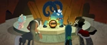 Auf der Party feiern die Gäste mit einer Pappkamerad-Maud. Während die echte mit Pinkie und Mudbriar aus gebührender Entfernung zu sieht. Was Maud gut gefällt. Pinkie erzählt das es Mudbriars Idee war eine Überraschungsparty für sie zu planen auf die Maud nicht gehen muss. Wobei Mudbriar klarstellt das es ja keine Überraschung für Maud war das sie von hier aus die Vorbereitungen verfolgen konnte. Pinkie lässt es gut sein, freut sich und umarmt die beiden.