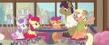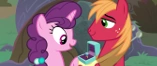 Etwas Später ist Mudbriar dabei sein Geschenk für Maud, einen Holzklotz, einzuwickeln. Allerdings hat er Schwierigkeiten das Papier festzuhalten und gleichzeitig die Schleife zu binden bis Pinkie ihm Hilft. Die ihm zur Entschuldigung einen Olivenzweig reicht. Pinkie hat eingesehen das sie unfair zu Mudbriar war und ist jetzt bereit sich seine Idee für Mauds Geburtstag anzuhören. Wen er ihn noch mit ihr planen möchte. Zunächst stellt Mudbriar klar das Pinkie da keinen Olivenzweig hat sondern eine Querkus. Die er zu schätzen weiß. Pinkie und Mudbriar schließen Freundschaft und er hat schon eine Idee für die Party.