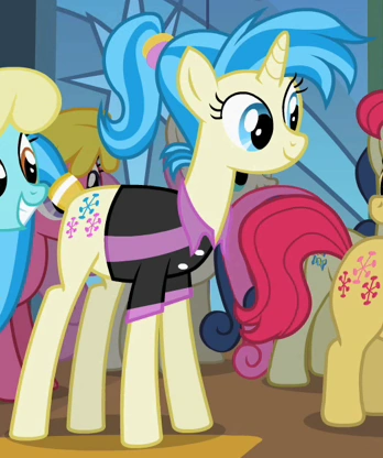 Pinny Lane ist ein Einhorn-Hintergrundpony aus Viel zu viele Schönheitsflecken. Ihr Name stammt aus dem Merchendais.