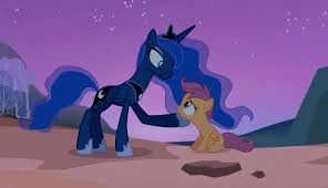 Als Scootaloo In Schlaflos in Ponyville von Rainbow Dashs Gruselgeschichten Albträume bekam, Besuchte Luna sie in ihren Träumen. Und machte ihr klar, dass sie sich ihren Ängsten stellen muss.