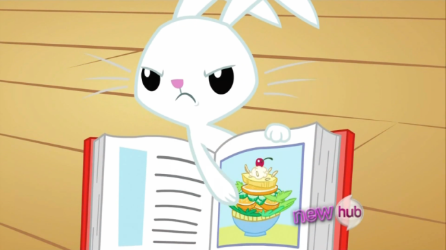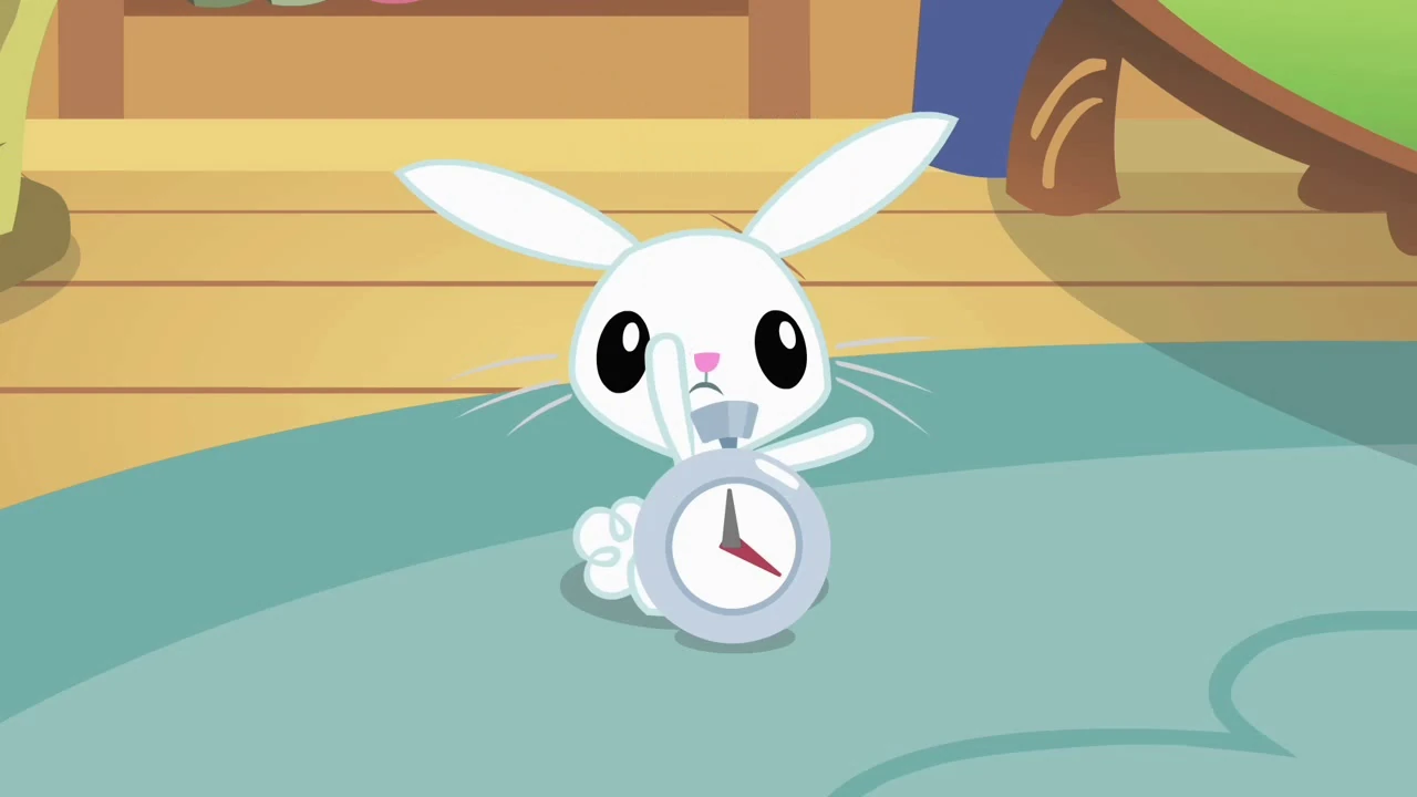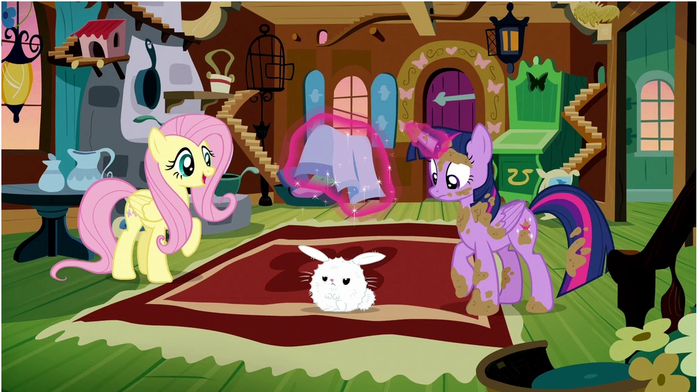 Angel aparece al principio y al final del episodio junto con un conejo con su mismo estilo de diseño y color, ayudando a Twilight con su truco de magia.