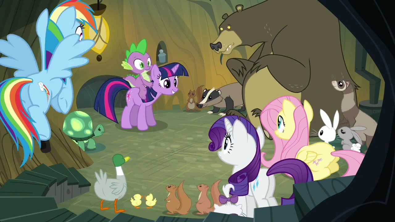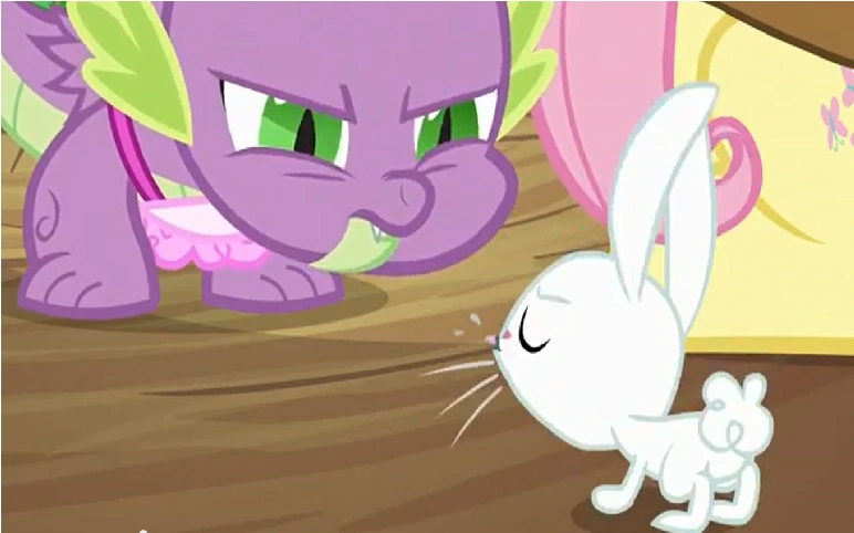 Más tarde, cuando Spike anuncia que cuidará a los amigos animales de Fluttershy, Angel salta hacia la cabeza de Spike y lo pisotea furiosamente. Esto hace que Spike flaquee y que todos los animales alrededor de él salgan corriendo. Al final del episodio, Spike captura a Angel solo para dejarlo caer sobre su cabeza para escribirle una carta a la Princesa Celestia.
