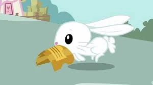 Angel es uno de los conejos de Fluttershy que comen de las enormes manzanas que aparecen por obra de Discord en Sweet Apple Acres y a los que luego se les estiran las patas.