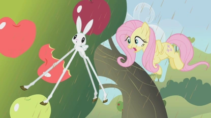 Angel se ve en la apertura comiendo felizmente una zanahoria hasta que Fluttershy aparece y le advierte de no comer demasiado rápido. Luego se niega a comer y después le muestra a Fluttershy una gran nube negra en la distancia.