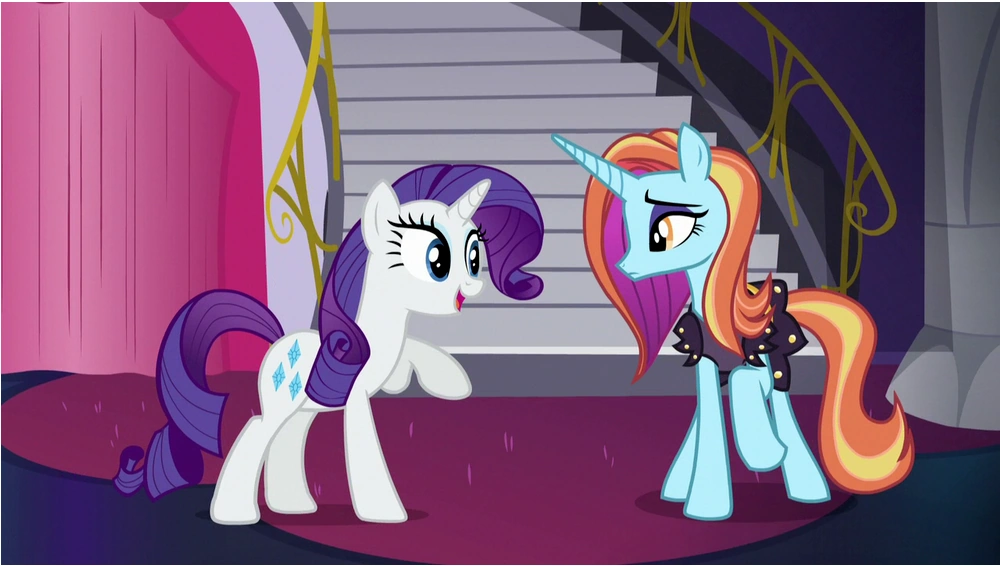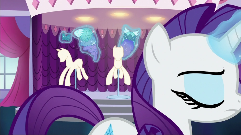 - Rarity: ¡Alto! ¡Esta no es tu boutique! Y si así es el éxito en Canterlot, ¡a mí no me interesa ser parte de ello! Ahora, ¡haz volantes para una barata de liquidación! ¡Voy a cerrar Canterlot Carrusel!