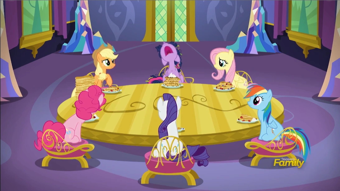 Al día siguiente, las Mane 6 tienen un desayuno de panqueques juntas en el comedor del castillo de Twilight. Sin embargo, una Twilight desordenada duerme durante toda la comida, después de haber pasado toda la noche preparando panqueques con Pinkie Pie. Las otros ponis también han tomado nota del reciente comportamiento extraño de Twilight: ayudar a Applejack a cavar más hoyos para árboles de los necesarios en Sweet Apple Acres, pasar una tarde entera ayudando a Rarity, organizando un solo cajón de joyas en el Boutique Carousel y haciendo carreras con Rainbow Dash una y otra vez, sin importar cuántas veces había perdido.