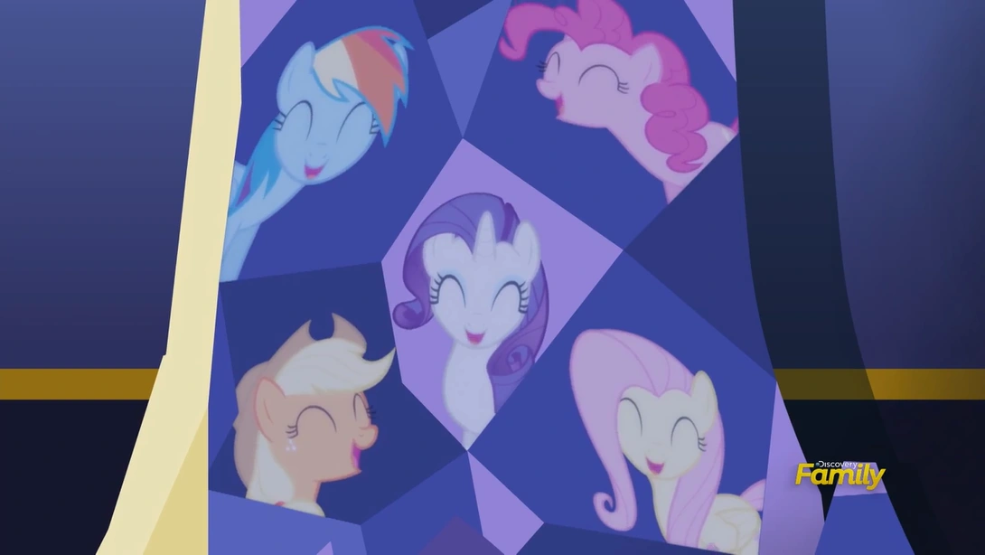 Las Mane 6 junto a Spike celebran con un pastel que Pinkie Pie hizo y lo comparten en el comedor recién formado, donde las amigas de Twilight admiten que han añadido un poco de estilo propio para las otras habitaciones del castillo, para gran diversión de todos.