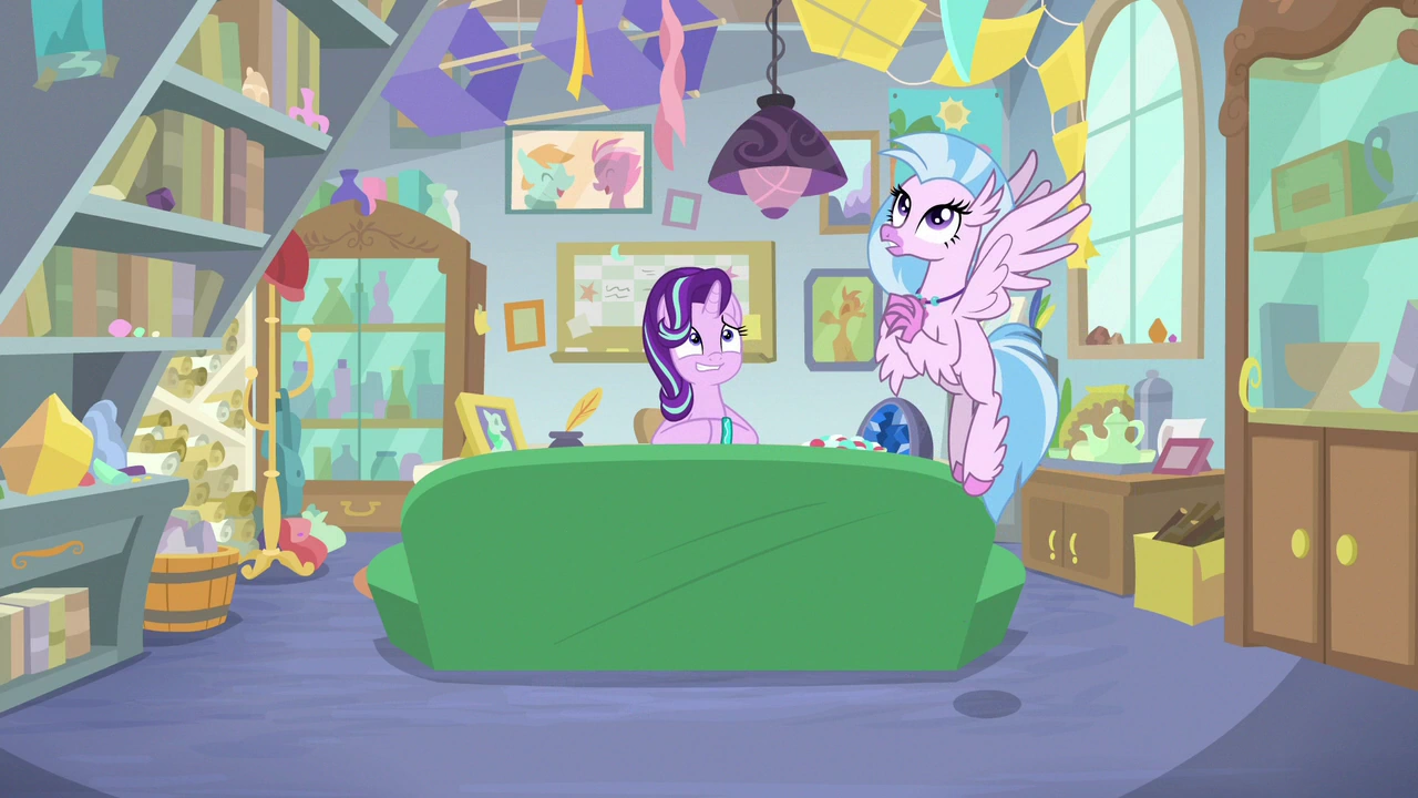 Justo en ese momento, Trixie se da cuenta de la casa del árbol de cristal que los Young Six crecieron de los restos del Árbol de la Armonía. Dentro de la casa del árbol, el grupo encuentra que Silverstream está terminando su proyecto de investigación con la ayuda de una cucaracha llamada Edith. Habiendo seguido el consejo de Starlight de antes, Silverstream quería terminar su tarea antes de irse a casa para las vacaciones de primavera, y se disculpa por causar que todos se preocupen.
