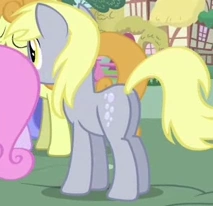 En La Viruela Cutie, una potranca con los mismos ojos y color de Derpy aparece brevemente en una toma del patio de la escuela, con la mayoría de su cuerpo oculto tras Apple Bloom y otra potranca.
