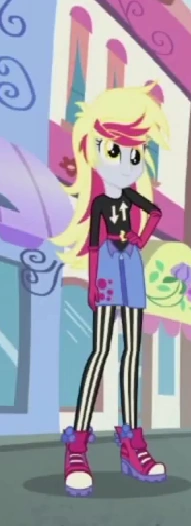 Su contra-parte humana aparece en el corto de Rainbow Rocks, La Vida Es Una Pasarela, en la calle mirando a Rarity, hasta que ésta le lanza un rayo de estilo y su ropa y cabello cambian a un estilo punk.