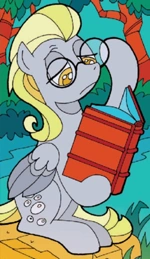 Derpy, también conocida como Muffins y anteriormente Ditzy Doo, (incluido para América Latina) más conocida por los aficionados como "Derpy Hooves", es una pegaso de color grisáceo con una Cutie Mark de burbujas y una de los tantos ponis de fondo que usualmente se la puede ver. Su fama empezó a surgir a partir de una imagen de ella con los ojos bizcos en el episodio La Magia de la Amistad, Parte 1.