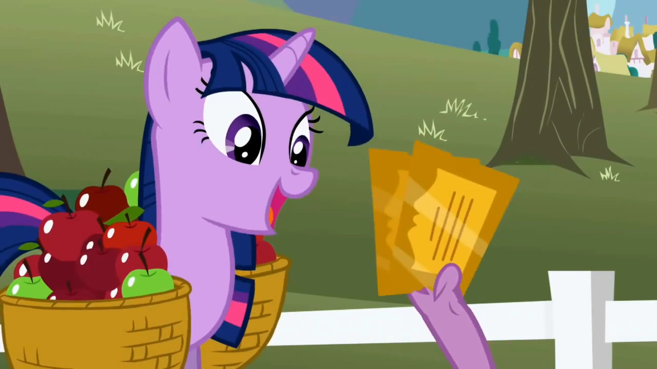 Rarity aparece y los lleva a Boutique Carrusel, donde les hace un cambio de imagen. Cuando queda claro que Rarity sólo quiere ganarse el favor para conseguir el boleto, Twilight la reprende e intenta irse, pero Applejack la detiene y le ofrece un carrito llena de postres. Twilight se niega y regresa a casa, sólo para encontrar a Fluttershy y a sus animalitos limpiando el interior de la biblioteca. Mientras Twilight les pide que se vayan, Pinkie Pie la saca afuera y canta una canción aduladora mientras los habitantes del pueblo la lanzan al aire. Cuando Pinkie menciona en voz alta el boleto adicional, los ponis del pueblo se alborotan y comienzan a ofrecerle favores a Twilight. Terminan persiguiéndola y acorralándola, lo que la obliga a teletransportarse con Spike de regreso a la biblioteca.