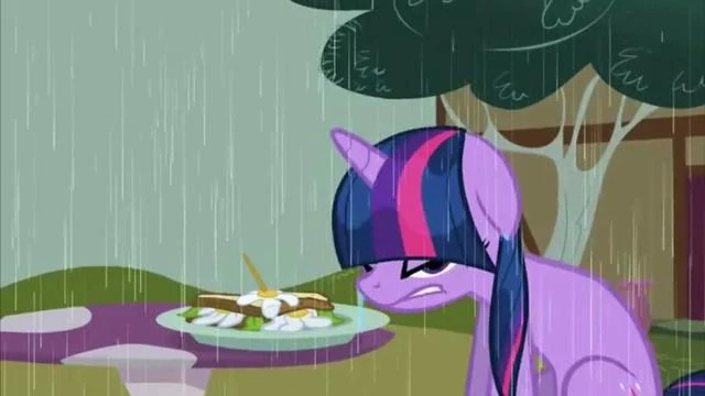 Twilight reflexiona sobre a cuál de sus amigas debería invitar a la gala mientras ella y Spike esperen su comida en una mesa afuera de un restaurante. Pronto se da cuenta de que otros ponis corren a refugiarse, y nota que está lloviendo en todo el pueblo, excepto justo sobre su mesa. Al alzar la vista, ve a Rainbow asomándose desde un agujero entre las nubes y la reprocha que no debe hacerle favores sólo para ganarse el boleto. A regañadientes, Rainbow cerra el agujero, empapando a Twilight y Spike y arruinando su almuerzo.