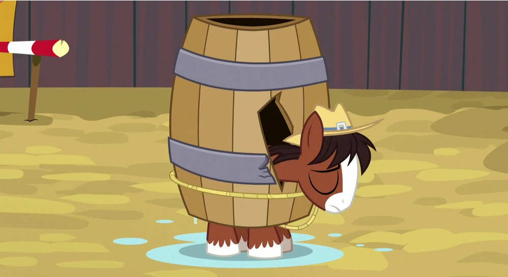 Applejack practica para el evento de apilamiento de pacas de heno del rodeo, tomando el lugar de su primo Braeburn después de que se lesionó una de sus pezuñas. Braeburn pierde brevemente la vista de las Crusaders después de prometer a Applejack que él cuidaría de ellas. Cuando las potrancas regresan con recuerdos de rodeo, Applejack les regaña por ir por su cuenta.