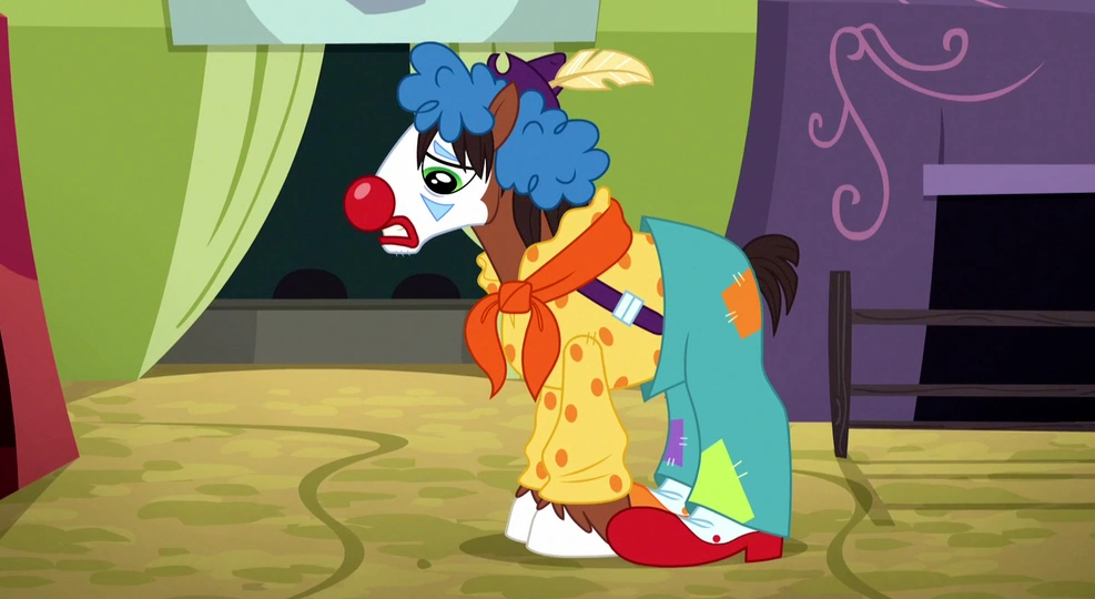 Durante su actuación, Trouble Shoes revela accidentalmente su identidad a la multitud, y los ponis de Appleloosa rápidamente se vuelven en su contra. Las Cutie Mark Crusaders lo defienden, afirmando que sus errores del pasado eran sólo accidentes, y algunos de los ponis admiten que él es un payaso con talento. Trouble Shoes se disculpa por todos los problemas que ha causado y se compromete a asumir la responsabilidad por ello.