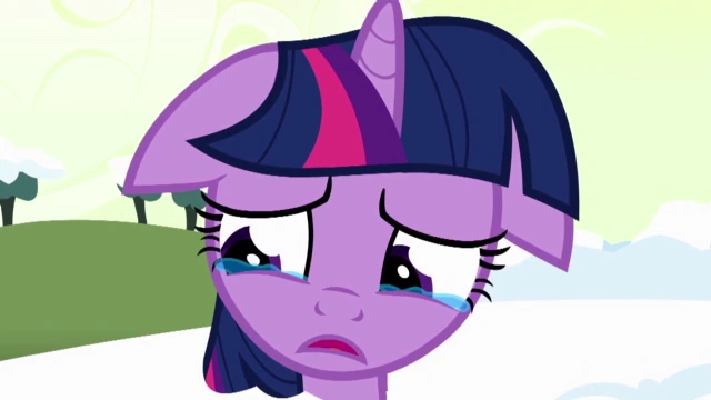 Twilight llorando cuando Applejack rechaza su ayuda