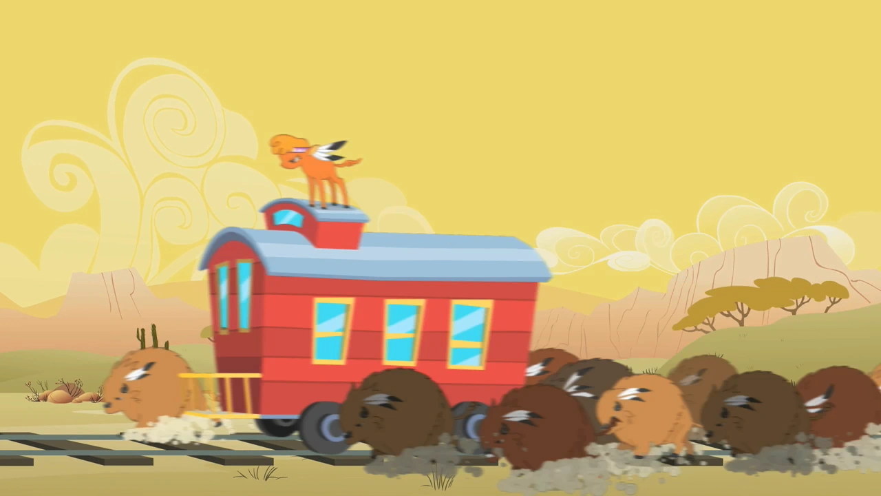 A la mañana siguiente, las ponis se despiertan al notar una estampida de búfalos corriendo junto al tren. Mientras algunos embisten el costado del tren, una joven búfala salta al techo y, tras esquivar a Rainbow Dash, desconecta el vagón de cola con Spike y Bloomberg aún adentro. Las ponies observan con consternación mientras los búfalos empujan el vagón desconectado por las vías en la dirección contraria.