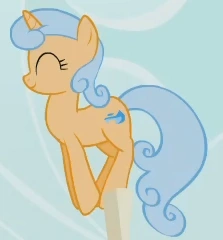 Es una unicornio que comparte el mismo diseño de Twinkleshine, con el cuero de un naranja claro con la crin/cola de color celeste, se desconocen el color de sus ojos ya que se la vio con los ojos cerrados durante su única aparición. Su Cutie Mark es un grifo de agua azul.