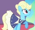 Aparece en los episodios La Mejor Noche en la Historia y en Una Boda en Canterlot, Parte 2, en el momento que Rarity alcanzó el ramo de flores que tiró Cadence. Su combinación de colores es similar al de una poni de la G1 llamada Jangles, también es parecida a Shoeshine.