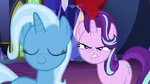 Cuando los decepcionados habitantes comienzan a dispersarse, su atención se dirige hacia una gran máquina con forma de locomotora que se aproxima al puesto de sidra. Dos hermanos unicornios llamados Flim y Flam descienden y realizan un número musical con la multitud, en el que usan su máquina "Súper Veloz Exprimidora de Manzana 6000" para producir sidra rápida y de buena calidad. Aunque la presentación carismática de los hermanos y su promesa de abundante sidra ganan el favor del público, la familia Apple se niega a permitirles usar las manzanas de Sweet Apple Acres, ya que el reparto de ganancias propuesto los dejaría sin negocio.