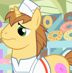 El trabajador que saluda a Rarity en La Crema y Nata. Más tarde aparece en Ponyville en Insomnio en Ponyville. Asiste a la reunión de la Familia Apple en La Reunión de la Familia Apple. Su Cutie Mark son tres nabos. |