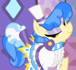 Aparece brevemente en la sección VIP de la Gran Gala del Galope. Parcialmente oculto por un adorno que cuelga de una bandera. Su Cutie Mark es un pergamino. |