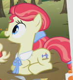 Miembro de la familia Apple. Aparece en La Reunión de la Familia Apple con un lazo rojo en la crin. Su Cutie Mark muestra una manzana y varias flores de manzana. |