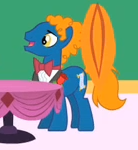 El trabajador que saluda a Rarity en La Crema y Nata. Más tarde aparece en Ponyville en Insomnio en Ponyville. Asiste a la reunión de la Familia Apple en La Reunión de la Familia Apple. Su Cutie Mark son tres nabos. |
