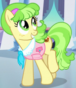 Miembro de la familia Apple. Aparece en los episodios La Magia de la Amistad, Parte 1, La Reunión de la Familia Apple y Cura Mágica y Misteriosa. Su Cutie Mark son tres pastelitos verdes. Comparte su diseño con Pink Lady. |