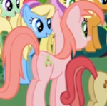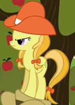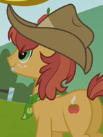 Miembro de la familia Apple presente en la reunión de La Reunión de la Familia Apple. Su Cutie Mark es un trozo de tarta marrón, como la mostrada por Applejack en El Boleto Extra. |