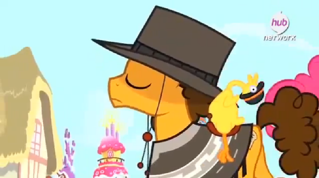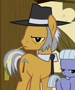 Bisabuelo de Diamond Tiara, en la fundación de Ponyville. La imagen está en color sepia. |