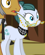 Miembro de la familia de la Abuela Smith, posiblemente su hermano, visto en los recuerdos de Día de la Valoración Familiar y La Reunión de la Familia Apple. Su Cutie Mark son tres herraduras. |
