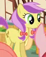 Miembro de la familia Apple presente en la reunión de La Reunión de la Familia Apple. Su Cutie Mark son tres manzanas cortadas horizontalmente. |