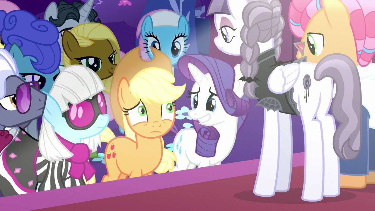 - Rarity: El tercer jurado para el concurso de moda Couture du Future de la Boutique Carrusel es nada menos que… ¡Applejack!