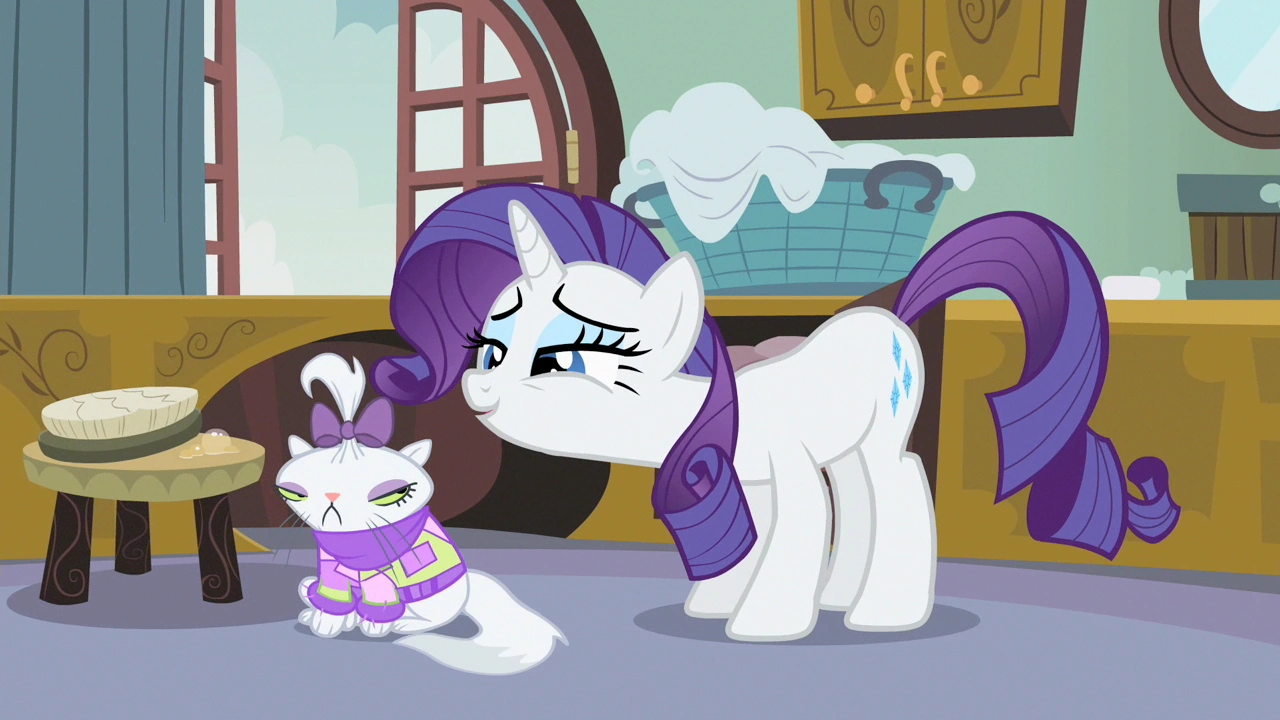 Mientras Opal toma una siesta en el cuarto de lavado, Rarity accidentalmente le pisa la cola. Al verla, de inmediato le coloca un sueter, el que solía ser el favorito de Rarity hasta que Sweetie Belle accidentalmente lo encogío al lavarlo. Aunque a Rarity le encanta como le queda el sueter a Opal, a esta parece desagradarle.