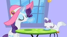 Opal y Rarity disfrutando del lujo y sofisticación de Canterlot