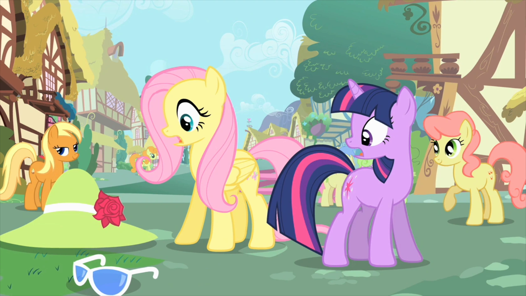 cuando ocurre eso, y cuando todas las ponis corren hacia Fluttershy.