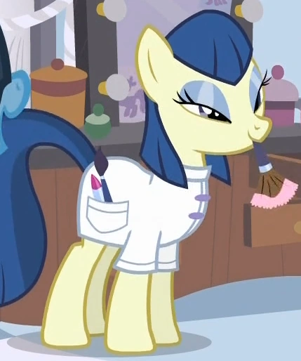 Powder Rouge es una poni terrestre que trabaja como estilista de Photo Finish en Verde de la Envidia junto a High Style.