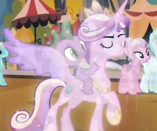Cadance y Spike convertidos en ponis de cristal