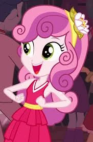 Su contraparte humana asiste a Canterlot HighSu primer aparición es durante la recorrida de la escuela de Twilight Sparkle, donde persiguen junto a Apple Bloom a Scootaloo quien usa su Scooter en los pasillos de la escuela. Luego se la ve junto a sus dos amigas en la Biblioteca de la escuela, donde ven su vídeo que fue un "fracaso épico" (según los comentarios) hasta que Cheerilee las reta y les quita el parlante del ordenador. Sin embargo, Sweetie Belle malinterpreta un comentario que decía "Lo más gracioso que he visto", haciendola animar a las Crusaiders. Aparece en la cafetería antes que las Mane-6 canten y bailen, a Sweetie Belle y a sus dos amigas se las encuentran en la mesa con Applejack. Aparece más tarde en el Baile de Otoño bailando y luego viendo a Sunset Shimmer llorando despues de su derrota.