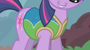 - Twilight se téléporte pour la première fois dans La Magie de l'amitié (partie 2). Dans L'anniversaire de Spike, elle téléporte Spike à plusieurs reprises pour nettoyer une marque de baiser sur sa joue, mais finit par téléporter accidentellement Pinkie Pie à partir d'un lieu inconnu.