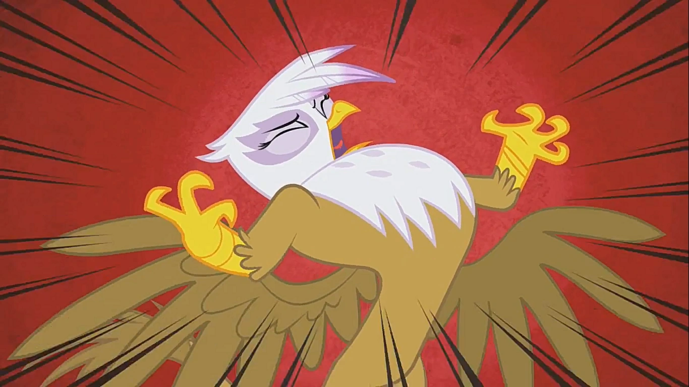 Gilda: This.. is your idea of a good time?! I've never met a lamer bunch of dweebs in all my life! And Pinkie Pie... YOU! You are "Queen Lame-o" with your weak little party pranks! Did you really think you could make me lose my cool? Well, Dash and I have ten times as much cool as the rest of you put together! Come on, Dash. We're bailing on this pathetic scheme... Come on, Rainbow Dash, I said we're leaving!