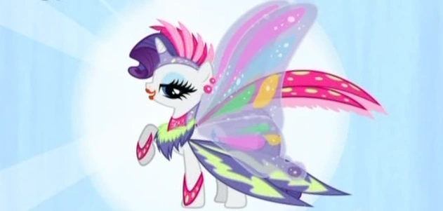 Rarityは自ら進んで被験者に立候補した。魔法は成功し、蝶のような半透明で大きな羽を生やすことが出来た。魔法の難易度が高いため、Twilightは一度しか発動させることが出来なかった。Rarity以外のポニーは、簡単な魔法でペガサスじゃなくても一定の期間だけ雲の上を歩くことが出来る魔法で対応した。