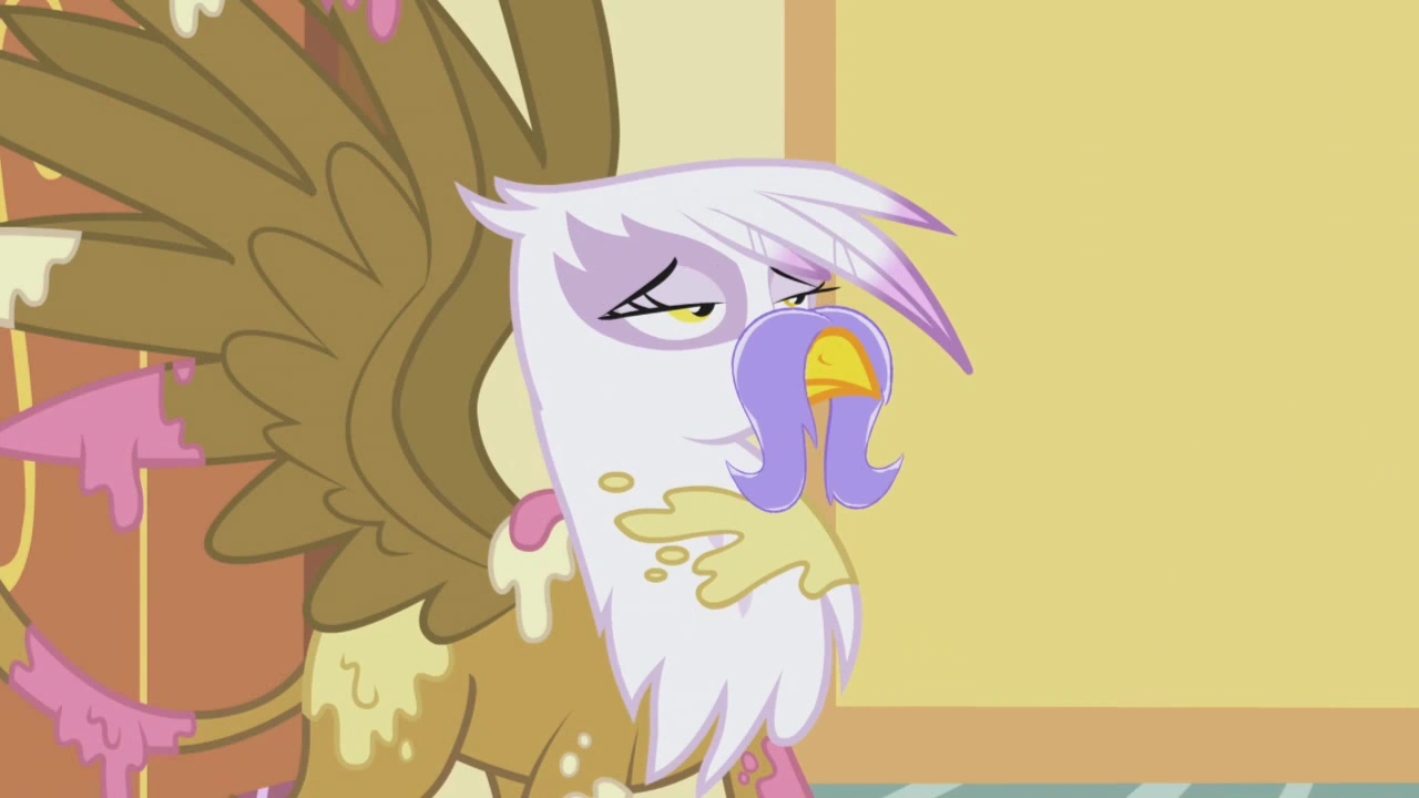 잠시 후 핑키파이는 케이크를 가져온다. 스파이크는 자신이 촛불을 불고 싶다고 부탁하지만, 트와일라잇은 길다가 파티의 주인공이라는 이유로 스파이크를 막는다. 그때 길다가 나타나 “알았으면 비키라”며 스파이크를 밀친다. 길다는 촛불을 불어 끄려고 하지만, 사실 촛불은 장난용 가짜 촛불이었어서 아무리 불어도 꺼지지 않는다. 길다는 또 다시 다른 포니들의 웃음거리가 되지만 애써 감정을 숨긴다. 레인보우 대시가 “이런 유치한 장난에 화난 건 아니냐”고 묻자 길다는 당연히 아니라며 부정한다. 길다가 케이크 뒤에서 핑키파이를 위협하는 동안, 애플잭이 ‘눈 감고 꼬리 달기’ 게임을 제안한다. 래리티는 자신이 제일 좋아하는 게임이라며 먼저 보라색 꼬리를 하겠다고 나서지만, 길다는 보라색 꼬리를 낚아채고, 자신이 주인공이므로 보라색 꼬리는 자신이 해야 한다고 주장한다. 게임이 시작되고 핑키파이는, 천으로 눈을 가려서 앞을 못 보는 길다를 꼬리 달기 그림이 있는 곳으로 데려다 준다. 하지만 길다는 핑키파이가 또 장난을 치고 있다고 의심하며 반대쪽으로 향한다. 핑키파이를 무시하고 가던 길다는 바닥에 떨어져 있던 케이크 크림을 밟고 부엌으로 미끄러져 들어간다. 길다가 부엌에서 나오자 보라색 꼬리는 길다의 부리 위에 있었고, 그 모습이 꼭 수염 같자 길다는 또 포니들의 놀림거리가 된다. 결국 화가 폭발한 길다는 핑키파이를 이 장난의 주동자로 몰아가며 포니빌 전체를 비하한다. 길다는 레인보우 대시에게 나가자고 하지만, 레인보우 대시는 자신이 이 파티의 장난들을 꾸몄다는 것과 우연찮게 길다만 장난에 걸렸다는 것을 알려준다. 길다는 핑키파이가 자신을 골리기 위해 꾸민 짓이 틀림 없다고 부정하지만, 핑키파이는 길다를 바꿔주고 싶어서 파티를 열었을 뿐이라고 해명한다. 뒤를 이어 레인보우 대시는 “새로운 친구를 무시하는 소꿉친구와는 놀고 싶지 않다”며 길다를 나무란다. 길다는 화를 내며 파티를 떠나고, 레인보우 대시는 길다를 대신해 모두에게 사과한다. 또 트와일라잇 스파클은 핑키파이를 함부로 판단한 것에 대해 사과한다.