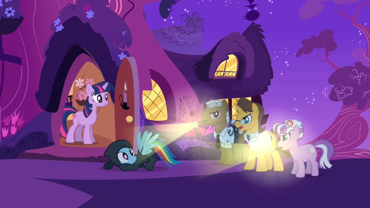 병원 경비원들은 도망치는 레인보우 대시를 추적하고, 레인보우 대시는 책에서 본 것처럼 기지를 발휘해 도망친다. 하지만 레인보우 대시는 트와일라잇의 도서관 앞에서 경비원들에게 잡히고 만다. 결국 레인보우 대시는 자신은 책을 좋아하고, 책을 읽고 싶어서 병원에 침입했다는 사실을 밝힌다.